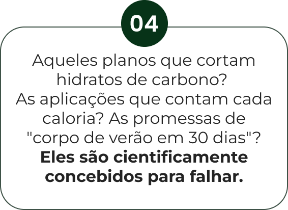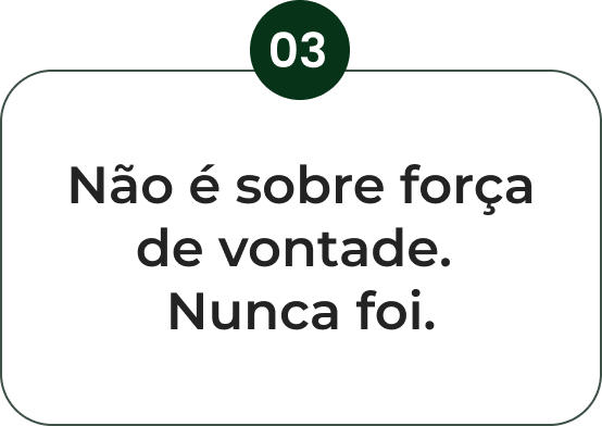 O teu sucesso é a minha prioridade absoluta. Comprometo-me a adaptar continuamente o processo até encontrarmos a abordagem que funciona especificamente para o teu corpo e estilo de vida.